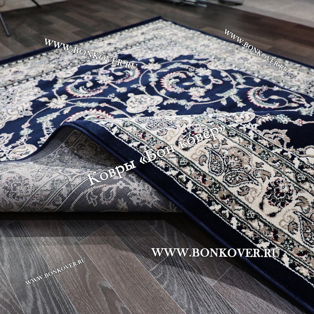 Шикарный Ковер Для Гостиной Дизайн 30837 Темно-Синий наполняет интерьер жилого пространства теплом и уютом, гармонично сочетает в себе изящество и красоту. Он изготовлен из экологически чистого сырья, комфортный и долговечный.